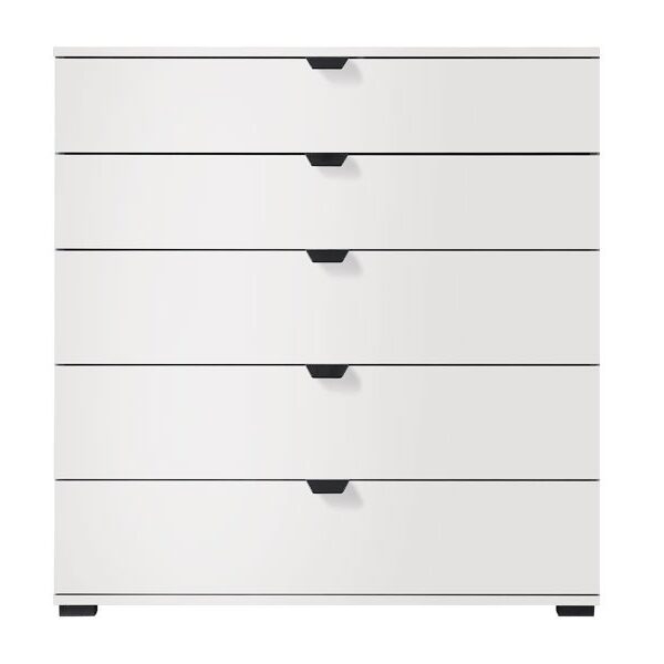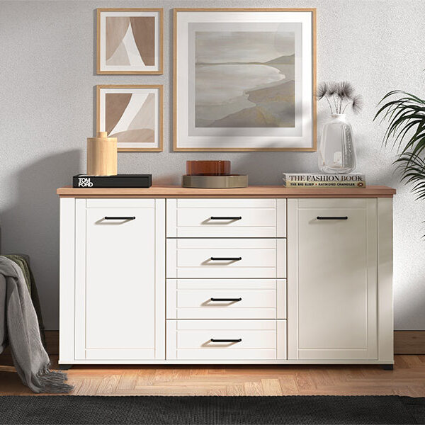 Komoda ASCALON 2K4F 90 u kombinaciji opak bijelog dekora, crnog dekora i bijele mat folije, moderno je dizajniran i autentičan komad nameštaja koji će, doprineti kako estetici, tako i funkcionalnosti ambijenta spavaće sobe.