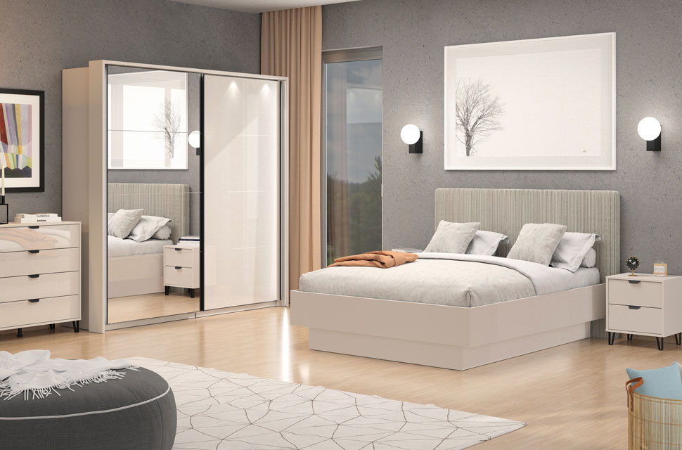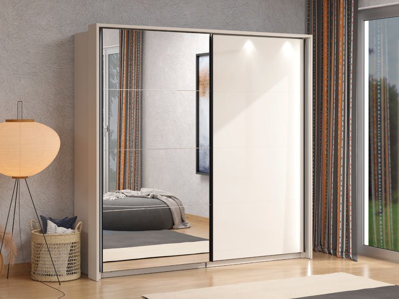 Garderober LUCCA 220 OG h217 u kombinaciji kašmir dekora i kašmir bojenog stakla, predstavlja atraktivno i funkcionalno dizajnersko rešenje za opremanje savremenog ambijenta spavaće sobe. Levi front garderobera prekriven je ogledalom, što doprinosi izraženoj estetici, eleganciji, ali i praktičnosti. Upotrebni prostor ovog modela čine garderobne šipke. Poseduje mogućnost dodavanja polica, vertikala, fioka, usporivača za klizni mehanizam, rama za garderober koji doprinosi izgledu masivnosti, kao mogućnost dodavanja rasvete. Dio je istoimenog sistema elemenata za opremanje spavaće sobe LUCCA, moderne dizajnerske forme.