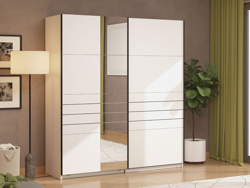 Garderober VEYMONT 200 OG h217 sa kliznim vratima, u opak belom dekoru i segmentom sa ogledalom na levom frontu, doprinosi enterijerskoj funkcionalnosti i estetici. Deo je kolekcije garderobera VEYMONT i predstavlja elegantno i veoma atraktivno dizajnersko rešenje, čija izražena estetika doprinosi celokupnom ambijentalnom utisku.