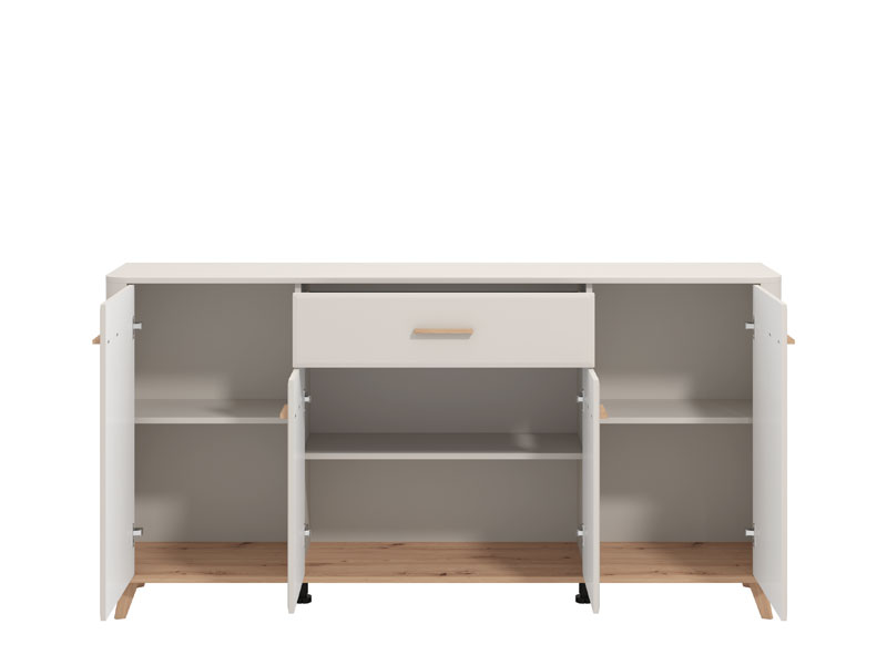 Komoda DARWEN 180 4K1F4V u kombinaciji kašmir dekora, dekora artisan hrasta i kašmir mat folije predstavlja atraktivno rešenje za sve ljubitelje modernog dizajna enterijera. Idealan je izbor za uređenje dnevnog boravka. Upotrebni prostor čine četiri zatvorena pregradna dijela i jedna prostrana fioka. Dio je sistema elemenata DARWEN za opremanje dnevne sobe koji ispunjava svakodnevne životne i ambijentalne potrebe.